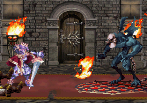 When running throughout most of the pathways – which you’ll need to do a lot, since you’ll need to backtrack quite a bit, and some of the dungeons are expansive – you’ll randomly get attacked by enemies. Unfortunately, it’s here where Princess Crown stumbles. These battles are technically one-on-one, although occasionally you’ll come across groups of enemies that tag-team in and out of combat. The fighting system is pretty odd because it sets itself up like a 2D fighter – you press Up to jump and hold Back to block – but it doesn’t flow like one. Your movements are all extremely slow and deliberate, to the point where everything feels sluggish. There are only three types of strikes – your standard combo, executed by hitting the Attack button; a running slash, executed by holding Down and pressing Attack; and a super blow, executed by holding the Attack button for a few seconds. All three are slow and awkward, and the fighting system desperately begs for a quick jab maneuver. And while you can launch jumping attacks, good luck hitting anything with it.