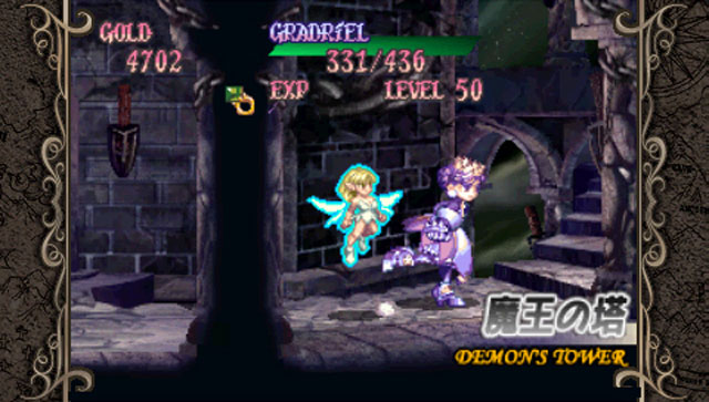 But ultimately, it’s the little graphical touches that give Princess Crown so much personality. When walking, Gradriel slowly saunters forward, peering up and around and surveying the landscape. When running, she holds her arms outstretched at her sides and runs like a prim and proper young lady. Whenever she eats anything, she puts her hands to her mouth and swallows. She leaps up and down with glee whenever she gains a level. And despite how girly she looks, she also appears surprisingly menacing whenever she brandishes a sword. Gradriel doesn’t actually carry her blade on her (which is at least half the size of her body) but is delivered to her by her fairy familiar at the beginning of each battle, and whisked away just as quickly during the victory screen. These animations do a better job of illustrating Gradriel’s character than any number of dialogue boxes, which is something some JRPG script writers should pay attention to.