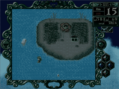 The game plays itself out in menus, as you make decisions and schedule how your daughter will spend her month. She can get tired if you overwork her, so you have to remember to give her time to rest. Her work is the main source of income for the house, and it helps her earn different skills, but risking an adventure in a dungeon area can lead to greater riches (assuming your daughter is strong enough to make the journey). Money leads to better equipment and better clothing, which in turns allows for more ability as a fighter or in trying to earn favor at the court. All other systems, like dungeon exploration and combat, are dirt simple, with simple options that have no real complexity or strategy. It’s all about learning the layout of different maps, figuring out how to trigger different events, and knowing the most basic weakness of an enemy.