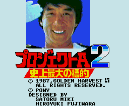 Pony Canyon’s last effort on the MSX was the 1987 release of Project A 2. This game is based on the movie Project A Part 2, which was filmed specifically with Japan in mind. According to popular legend, the emperor of Japan was such a big fan of Project A, that he sent word that he wanted to see a sequel, and so Jackie decided to do so. The movie picks up right after the end of Project A, as the pirates are defeated and the few remaining survivors take a blood oath to seek revenge for their fallen brothers. Ma is transferred to work as a police officer to figure out if the allegations of corrupt policemen is indeed true.