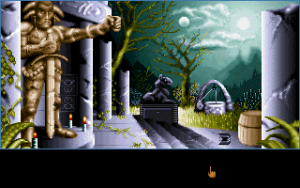 The only things propping it up are the puzzles, which feature the same pixel hunting and strange item combination tasks as Coktel’s previous games. You’re accompanied by a vampire bat named Urm, who will help you providing you can find some fruit, as well as two hideous dancing dwarf things named Uki and Orbi who are mostly pointless. You also have a magic copper ball that can morph into three forms when combined with other items, requiring many pointless clicks on the inventory menu to transmute it back and forth. The PC version benefits from a 256 color palette as well a couple of branching paths not available in the Amiga and Atari ST versions. It also features brief looping full motion clips of some of the sub-characters, which look incredibly silly, but give it a bit of the extra Coktel-kitchiniess that the game sorely needs.