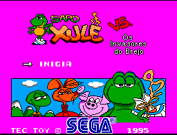 Like a number of Brazilian Master System games that originated in Japan, the original characters of Psycho Fox were replaced with the cast of Sapo Xule, a popular children’s cartoon. Fox is changed into Sapo Xule himself, a frog, while the rest of the cast are changed into a pig, a rat and a turtle. The items are all changed into potions, socks and flies. Birdfly has been turned into a shoe.