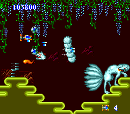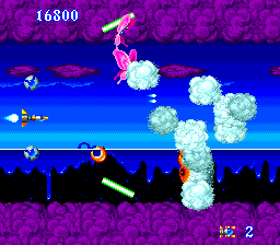 There are a few flashes of cleverness – in the first stage, there’s a small purple cocoon that’s being terrorized by a few ants. If you kill the bad guys without hurting it, then you’ll be protected by a swarm of butterflies when you first encounter the stage boss. Later on, if you manage to get to the fourth stage without getting killed, you’ll get protected by a turtle. The game really needed more interesting ideas like this. Otherwise, it’s pretty short – only five stages long – and never feels like it meets its full potential.