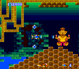 In the Japanese version, this demon taunts you between levels by giving you the middle finger and yelling “Fuck you!” in warbled speech. The animation was changed slightly in the English version so he’s just wagging his finger, and he says “Come on!” instead. The second and third stages are also swapped for some unknown reason.