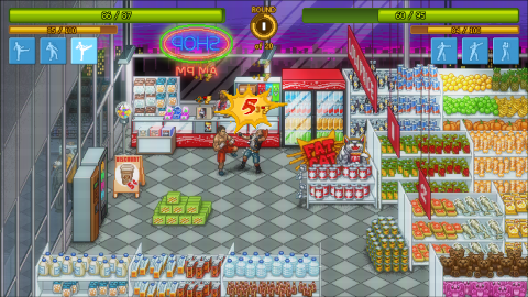 Punch Club is so retro that it even has a retro filter that gives the game the look of an old arcade classic (and its definitely the preferred way to play). The graphics are in a high quality arcade sprite style filled with life and detail. The soundtrack sounds like a lost SNES game score. It ends on a cliffhanger that wouldn’t be out of place in an event comic from the dark age, and directly references one of the most famous twists in pop culture history (and you probably guessed what said twist it is). Hell, the fight right before the end is a homage to Double Dragon! Becoming world champion involves fighting Ryu, Bruce Lee, and Hulk Hogan! The Godfather is here! Yes, from the award winning, cinema changing movie, AND YOU CAN FIGHT HIM WHILE HE’S PILOTING A WALKER MECH! There’s even a Don King parody here that also acts as a King of Fighters reference!