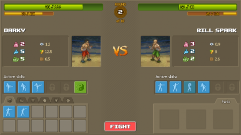 This is a game about thought and planning, despite the promise of punching people in the face. Fights proper are out of your direct control, limiting you to selecting what skills you want used during the fight, then pressing the fight button and watching the battle. This sounds annoying, but the fights proper are exciting to watch, as you see the full impact and implication behind every move through the stats shown on screen. Fights are also divided into rounds, so you can change your skill set to best fit the direction of the fight between each one. You do have control, just not the sort of control you’d expect.