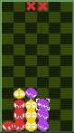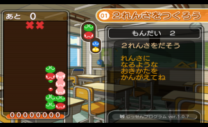 Aside from the story mode, the endless and multiplayer modes from the previous game are available in Puyo Puyo 7 – there are also endless modes of both adult and child modes, keeping in with the new feature. The lesson mode from Puyo Puyo 15th Anniversary also makes a return appearance, though it’s been formatted a bit differently. Instead of showing you the three basic forms of chains like the previous lesson mode did, Puyo Puyo 7 opts for a bit of a more complete approach in regards to the fundamentals of the game. Not only are the rules of each game mode explained here in more detail, but you’re also taught the very basics of chaining before getting on to the type of chain patterns used in competitive play. There’s also a section that shows you how to fuse the stairs and sandwich pattern, which is a great move since visualization is key when working with new types of chains. A further step to ease new players in has also been taken through the practice questions given after every lesson. In Puyo Puyo 15th Anniversary’s lesson mode, Ms. Accord and Popoi would offer slight quips here and there as you completed the practice – although they were entertaining, they didn’t help you focus much. In this game, however, things are much more helpful; you’re always given a tip that gives you a general idea of how to progress. What’s more, certain multi-step practice stages give you a new hint every time you drop your puyo down, which can help tremendously. Although the sets of 100 drills for each pattern are gone, Puyo Puyo 7 makes up for it through a tool that allows you to build your own board of puyo from scratch.