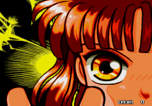 Body of a dog, torso of a woman. She’s apparently a kleptomaniac, though this trait isn’t shown much in the Saturn and PlayStation ports.