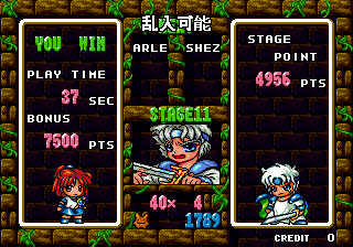 Since Compile once again cooperated with Sega for the arcade version, the Mega Drive port is the truest conversion. The only problem is that the quality of the music and voices is reduced slightly. On top of that, the music pauses whenever a character says a line. There’s an option in the menu that allows the voices to be played during the music, but at a great expense to the quality of said voices.