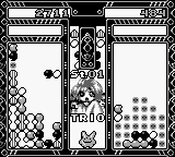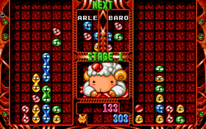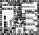 Titled Pocket Puyo Puyo Tsuu, the Game Boy version seeks to improve upon the previous portable release. Not only does every Puyo have a different shape, but also different patterns of lines and dots. This game also removes the characteristic eyes to save precious space. Unfortunately, it’s a bit difficult to read the second pair of Puyo that are coming up next, but at least this time it’s easier to tell them all apart from each other once they’re on the grid. It also gets rid of all the cutscenes seen in the Super Famicom and 32-bit versions. Thankfully, at least the “Through” mode from the later home versions is included. Finally, the music and sound quality is much improved.