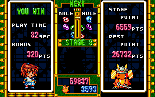 Puyo Puyo Tsuu has had a lasting impact on the series, having introduced a solid set of new mechanics, many of which have stayed with the franchise ever since. It was a huge hit at the time of its release, almost to the level of Street Fighter II, and sold tons of copies. While it may seem a bit dated now since there have been more refinements afterwards, it’s still arguably the “purest” Puyo Puyo game.