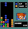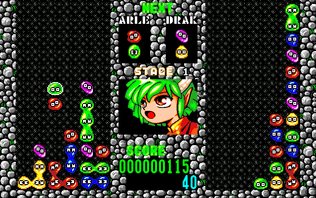 Even though the different versions of this game are identical in terms of mechanics, the Famicom release tends to be easier, since the marathon mode picks up at a slower pace than the MSX2 version. It also features an alternate skin for the Puyo, in the shape of people. On the other hand, the music in the MSX2 version sounds a bit better due to a wider range of instruments.