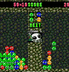 Disney Interactive brought out their own version of Puyo Puyo for Win 95 and Mac. Dubbed Timon & Pumbaa’s Bug Drop, the game features the Lion King characters, who narrate the action. As the title suggests, the Puyos are replaced with bugs. Despite the nice graphics, it’s a minimalist game, with only single and two-player modes, no variation in the boards, and lame music. The game is credited to a company called 7th Level, but the back of the box says “Bug Drop Game system from Puyo Puyo copyright Compile”.