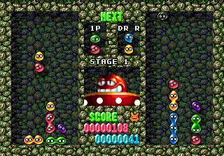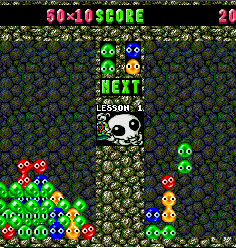 Mean Bean Machine has an absurd plot where the evil scientist Robotnik was trying to take over Bean Town, or something equally ridiculous. The Puyos here are referred to as “beans” for some reason, with Nuisance Puyos renamed “Refugee Beans”. Your opponents are taken from the Sonic the Hedgehog cartoon (the syndicated one, not the one on ABC), including Grounder, Coconuts, Scratch, and finally. Robotnik himself. Carbuncle is still running around, though he’s been renamed “Has Bean”, a former bean who has been turned into a robot. A lot of the music comes from the original Puyo Puyo, just used in different places and with a changed instrument set. It also features a password system, which is quite welcome. The Game Gear version includes some levels from Nazo Puyo, and the Genesis version can be found on many compilations.