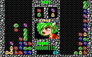 The main trick of this game is that the speed of falling Puyo increases significantly even within a single stage, making the game become extremely difficult very quickly, especially to newcomers of the series. Thankfully, there’s a way to ease the challenge – every time you get a game over and continue (at the cost of a credit, of course), the drop speed decreases by a few stages. So, all inexperienced players have to do is feed more and more money to the machine to make it easier, which is completely fair if you don’t think about it too much.