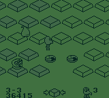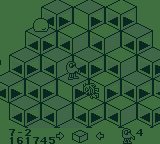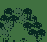 Considering that the vibrant colors used to be one of the defining characteristics of Q*bert, the Game Boy cannot hope to fully capture the charm of the cartoon world, and the many varying tilesets abandon the Escher effect, but at least the characters are fairly big and recognizable. Every few stages, the player is rewarded with a clip from “Q*bert the Movie”, which depicts the noser’s comical war against a palm tree. When all the scenes are strung together, though (which the game does after the final stage), it amounts to little more than a minute of footage or two.