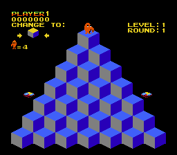 For a long time the final official release of the original Q*bert came for the NES in 1989, which seems to have been exclusive to North America, despite being ported by Konami. It’s most distinctive feature is the option to map movement to any directions on the d-pad, including diagonals. It is also the only version to have an ending screen to congratulate the player upon finishing the “final” round, before the levels would just start looping. Otherwise, it’s a no-frills exact port.
