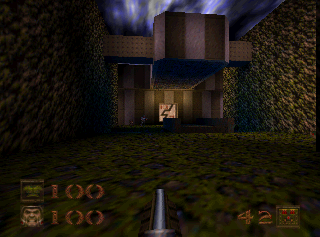 There were two consoles ports at the time. The Saturn port was handled by Lobotomy Entertainment, who was also behind the console ports of Powerslave. The id Tech 2 Engine was far too demanding to run on the meager Saturn, so instead the entire game was ported to use their SlaveDriver engine, also used in Powerslave. As with many other console ports of the era, some levels have been redesigned to reduce stress on the engine, but for the most part, it’s a fairly faithful conversion, and even includes some extra colored lighting effects. Four maps from the original game are gone, but replaced by four brand new ones, along with an unlockable “Dank & Scuz” comic. These are like a predecessor to the machinima videos that would become popular in the succeeding years, consisting of snapshots from the game, with goofy comic book dialogue and voiceovers, putting some Quake heroes in humorous situations. The Nintendo 64 port came courtesy of Midway Games, developed by the same team as Doom 64. This version is missing several levels, plus the soundtrack had to be altered due to the lack of CD audio, but still sounds pretty similar. The Nintendo 64 version lacks co-op but has two player deathmatch; the Saturn version lacks multiplayer altogether. The games run well considering their hardware, but only about what a low-end Pentium running in VGA mode would at the time.
