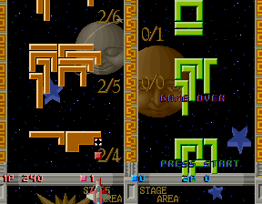 There were mobile ports in Japan under the name Block Wars. It’s also a bonus game in Ganbare Goemon Toukai Douchuu Ooedo Tengurigaeshi no Maki for the DS, except your ship is the Goemon Impact, a giant robot with Goemon’s face. It also uses the dual screens for an extra tall playing field.