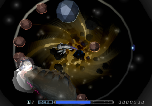 The actual game is only half as ambitious. Much like R-Type Delta, this installment is very dark, but some of environments here tend to look very washed out. And yet there are still moments where the game looks absolutely fantastic. The first level boss is made out of something like liquid metal, which oozes out and forms a reflective cavern around the screen. A rematch with the Dobkeratops shows the creature to be just as gruesome as ever. One of the final levels takes place in a virtual reality-like grid of colored lasers and geometric shapes, beating Geometry Wars to the punch.