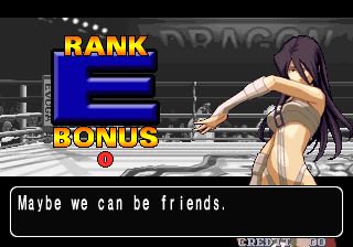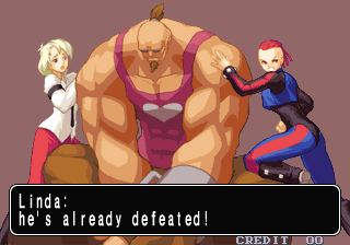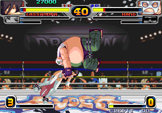 And of course, there are the remnants of the Double Dragon connections. The “Dragons” in the title, along with the “They are back…and fighting!” screens in the attract mode are surely there to imply some kind of connection. The two main male characters are named Billy and Jimmy…though technically their last names are “Lewis” instead of “Lee”, which is one of those details that might go unnoticed unless you did a little digging. It could be argued that obese Korean wrestler Jae-Mo Kang is based on Burnov, a boss from Double Dragon II who was also in the previous Neo Geo fighting game, but these connections are so specious that they’re not likely meant to be related.