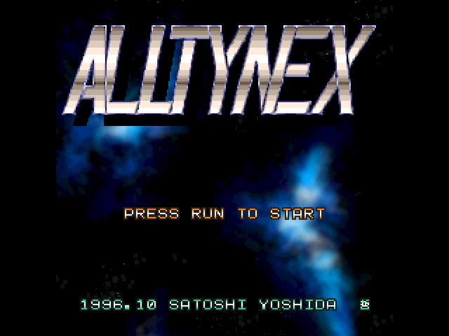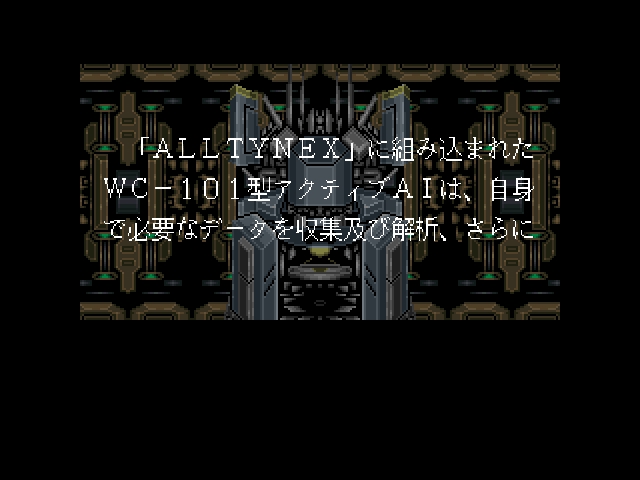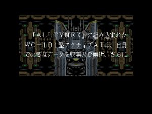 Before ALLTYNEX Second, before RefleX, before KAMUI, the man called Satoshi Yoshida (now known as Jirurun of SITER SKAIN) had released a vertical shoot-em-up called Raid Wind 2: Alltynex. This progenitor of the Tale of Alltynex trilogy is itself technically a sequel: there indeed was a Raid Wind 1 (a NEC PC-9801 shoot-em-up), but the name is the only connection between the two, and the “Raid Wind” part is not even mentioned past the intro sequence. The intro itself, presented in neat looking CG and Japanese text, tells a simple story: there’s the bad computer Alltynex, there’s the human fleet, you go and shoot everything. Pretty much the same deal as in ALLTYNEX Second.