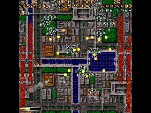 ALLTYNEX looks extremely good for a FM Towns game, almost looking better than KAMUI. The sprites are clean and colorful, there is a lot of sprite animation, and backgrounds are detailed and expressive. All this visual quality came at a significant cost, however – the game is incredibly prone to slowdowns. Even just firing the main gun at higher power can result in significant loss of speed, and it gets worse if the game does something creative like background transition or even just a really big wave of opponents. This occurs no matter how powerful is the system the game is running on (though CPUs faster than 50 MHz will make the game flip between too slow and too fast, and possibly cause other issues). The game’s soundtrack, on the hand, does not suffer from any slowdowns, and once again it is absolutely amazing and catchy.
