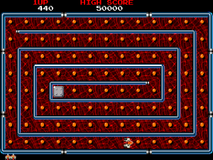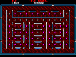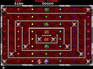 Taito’s 1986 Arkanoid was an update of Atari’s brick-breaker Breakout, adding elements like power-ups and enemies. The designer, Akira Fujita, looked to continue theme but turn toward the dot-eater genre – popularized by Namco’s Pac-Man, but technically started by Sega/Gremlin’s Head-On – and evolved it with the 1988 arcade title Raimais (pronounced “ray maze”).