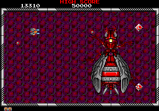 The “O” power-up stands for “Other Route” and creates entrances to boss battles called “Reverse Rounds”, where you fight one of four insect-like mecha. There are no dots to pick up here, and instead there are just Laser power-ups, with the sole goal being to destroy the boss. These baddies take up a huge part of the screen, plus they shoot projectiles at you, with the whole thing made more difficult by the fact that you’re in constant motion. It’s certainly much more difficult than a typical shooting game!