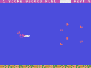 This SMS Rambo is more or less a clone of Commando and/or Ikari Warriors – move through the jungles, shoot bad guys, and rescue hostages by blowing up their prison tents. Player One plays as Rambo, but Player Two takes on the role of “Zane”, a character made up specifically for this game, who looks exactly like Rambo but wears a yellow headband. Your primary weapon is a tiny little pea shooter with barely any strength or distance, but rescued POWs will award you with items that will let your bullets tear through multiple bad guys or extend its range. Your secondary weapons are explosive arrows, which are actually quite hard to use – it only damages bad guys when it explodes, after traveling a short distance. You can also find power-ups that make its explosion much bigger, but it’s pretty rare. Compared to other overhead shooters, your characters move really slowly. Furthermore, you can’t turn around to attack something – instead, you’ll still face and shoot forwards while walking backwards. Due to the shortcomings of your weapons, it winds up becoming a very methodical shooter – which makes for a challenging game, although not a particularly great one. Still, the visuals are decent for an early Master System game, and the music by Katsuhiro “Funky K.H” Hayashi is sparse but catchy.