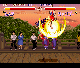 While its basic gameplay is almost exactly like Street Fighter II‘s, there are differences in the “feel” of the gameplay. Its combo system is more forgiving than Street Fighter II‘s and has more relaxed timing on cancelling, making combos seem less like a challenge or chore than in certain fighters. Chōgi Ranbu Hen is not very combo oriented, but allows for people familiar with Street Fighter II‘s combo system to adjust very quickly and makes it fairly easy to learn to properly execute Street Fighter II-style comboing and cancelling.
