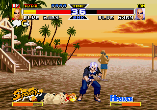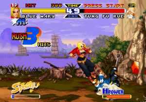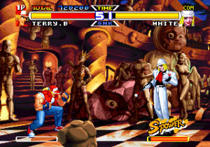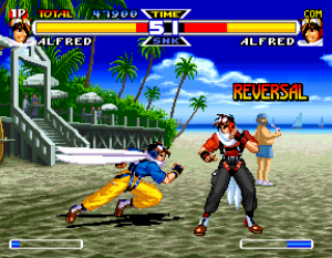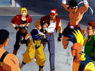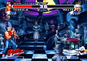 There are also a few new animated sequences. The intro shows Alfred flying his airplane, coming dangerously close to the Bogard brothers, who are sparring on the ground. It also shows action scenes of a few other characters, like Blue Mary, Mai and Joe, before it shows a fight between Terry and Alfred. This scene is pretty lame, but there are also two brief FMV scenes before the fights against Billy and White. There’s also a fully animated intro showing all of the characters partying, which is actually pretty cool.