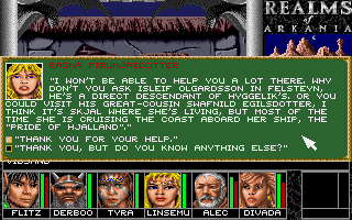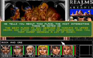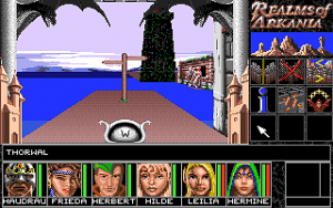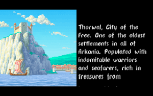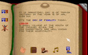 When the party is completely created and recruited, it is dropped inside the city of Thorwal, without any further instructions. As with most problems, the solution lies in one of the bars in town. No, really. The bars are the places where most information regarding the quest is to be gathered, be it the residence of local informants or the position of hidden dungeons. They are also meeting places for recruitable NPCs to fill the 7th slot in the party. At first, it’s necessary to learn about the Hetman’s proclamation of his search for heroes.
