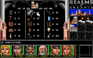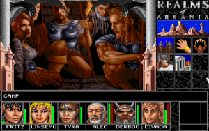 The PC later received a CD-ROM version that brought a lot of tweaks and improvements. First and foremost, the music now sounded even better than on the Amiga, rendering that version completely obsolete. The graphics also underwent a small upgrade, mainly visible on the city floor tiles. Furthermore, Attic improved the game with a lot of bug fixes and comfort options. Camping in dungeons and cities becomes possible for the first time, as does changing directions in between waypoints during travel. The trading screen now highlights the characters that are able to use a certain item or weapon, some items got rebalanced, and some logical errors corrected – to shoot with poisoned arrows in the disk version for example, one had to poison the bow and not the arrows in the floppy version, which the CD-ROM update corrects.