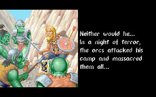 The shortage in budget and manpower becomes most clear in the behind-the-scenes story of the game’s intro: Those graphics were done by an external artist who wasn’t very familiar with the setting, and so he drew the Orcs in green, pointy-eared standard fantasy fashion. There couldn’t be any more differences with the actual Orcs in the game, which are covered in a thick brown fur, but there just wasn’t any time or money to spare to redo the intro, hence it just stayed the way it was.