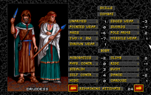 During their exploits, one or more heroes might cross the bar for the next experience level. In expert mode the distribution of EXP is more sparse, but in turn all skill improvement choices are left in the hands of the player. This works the same way as it does during character generation, but the higher the skills get, the more likely it gets to fail at raising them. The level curve is rather steep, and characters won’t exceed level 6 or 7 during the curse of the entire game.