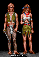 There are three major elven races in Arkania. Green elves live closest to humans and tend to be the most sociable. In the game, they get to wear heavier armor than other elves (but get consecutively nerfed in the sequels).