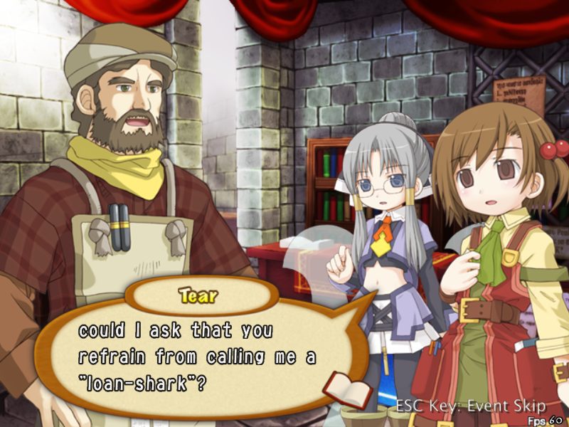 Recettear in itself is a unique game consisting of two major parts: business management sim and dungeon crawling action RPG. The first part, and by far the more unique of the two, is framed by a little girl, Recette, and her need to pay off a loan her father made as per a messenger elf named Tear, bastion of a finance company. They team up to help her pay off the debt with the start of a new business, the portmanteau of the main characters’ names and thus the title of the game, in the form of an RPG item shop. This premise is immediately exciting to anyone who has ever wondered about how RPG worlds function when the hero isn’t there, especially considering that in most RPGs your team seems to be the only people in the world shopping at these places and buying highly contextual goods. Conceptually, it’s a little bit like Gust’s Atelier series (more like the earlier Annie titles, not so much the Iris titles more known to the English speaking public) although functionally it doesn’t quite work the same way.