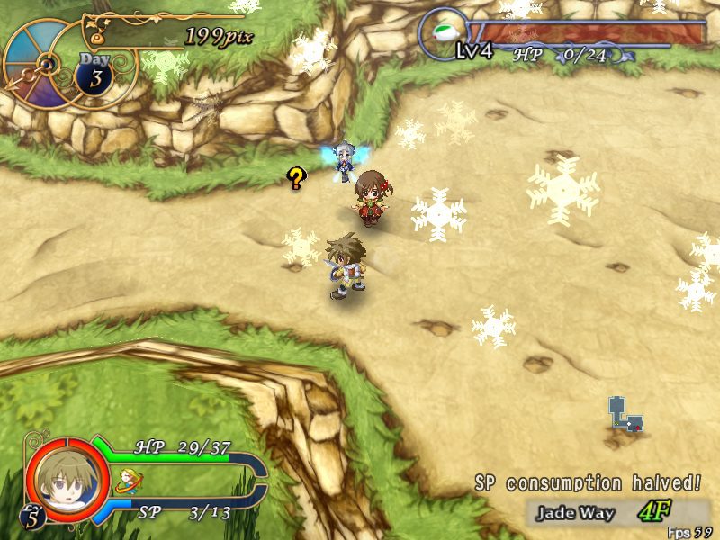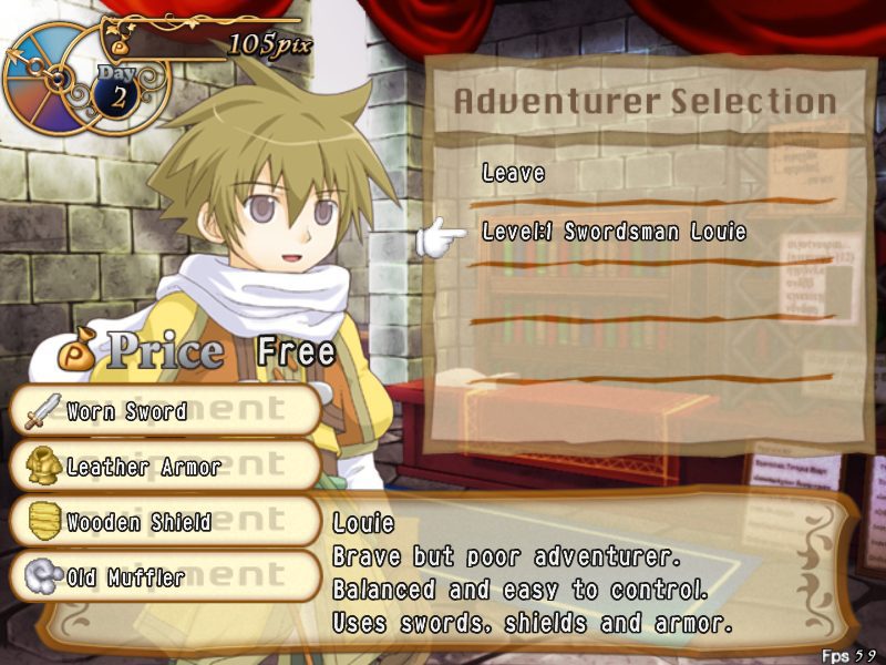 The other half of the game consists of hiring adventurers to go dungeon running. The developers took the action approach to vary the gameplay. When selling becomes dull, it may have been a great diversion. These action portions are much like a much simpler (and not nearly as much fun) version of the modern Ys games, except the dungeons are randomized and the controls aren’t nearly as versatile.This part can be fun at times (what’s better than some Ys, right?) but it is very difficult in the early stages of the game, because your adventurer’s starting equipment is essentially garbage. (At least a patch, released shortly after publications, fixed some of these issues.) For him to be able to defend and attack well he of course needs to have the right equipment. However, equipping the hero is not as simple as it seems. The only way to directly equip your character with the weapons, armor, and accessories they desperately need is to give it to them temporarily at the beginning of a dungeon run. The problem is that you have a limited number of inventory slots to bring back treasure, armor, and items to use with weapon crafting. For every piece of armor/weapon/accessory you replace from the adventurer’s default equipment, you take up one of these precious item slots. If you want these characters to use the good equipment by default, you have to wait for them to buy each item RANDOMLY from your store where someone may buy it first forcing you to turn down potential sales and experience for something that may happen eventually. Furthermore, you need to use these item slots to bring health items that you WILL need due to the difficulty.