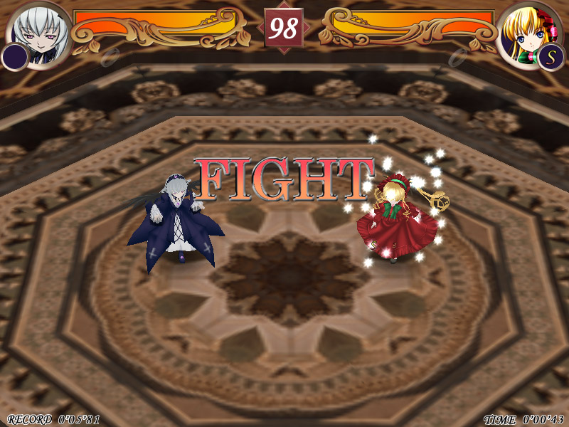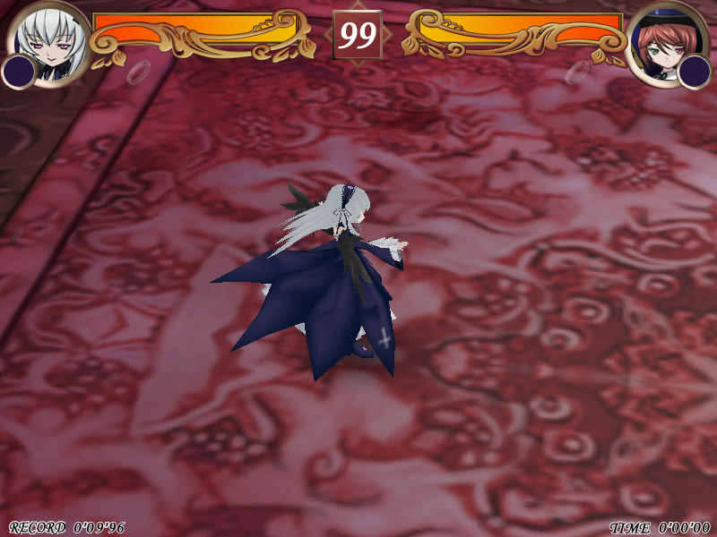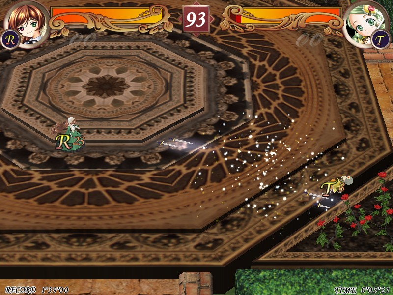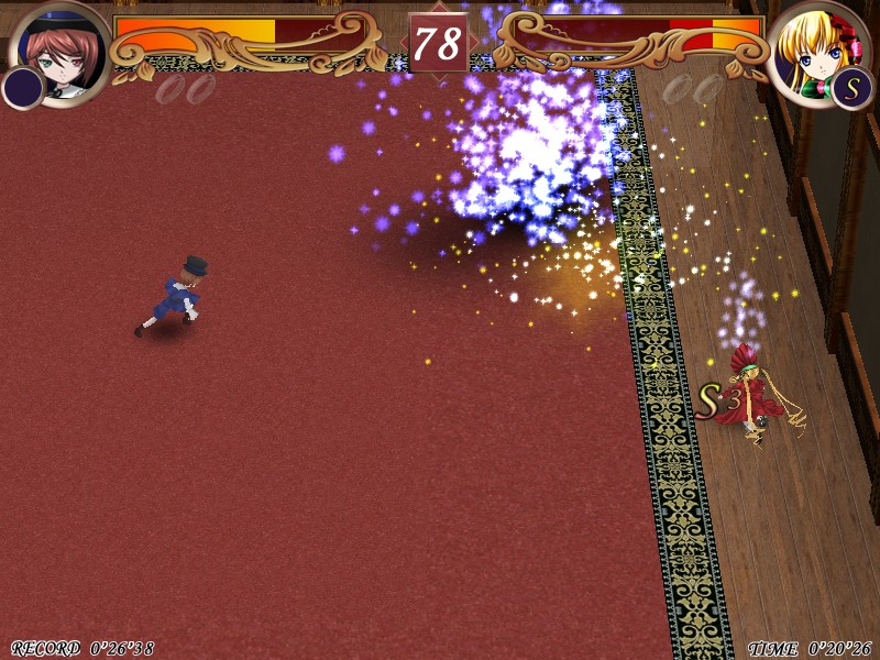Record of Rozen War: ALiBAT is an overhead arena fighter by Project YNP, vaguely similar to Capcom’s Power Stone, but with a greater emphasis on projectile attacks. It puts you in the role of an unseen medium who’s leading the doll of your choice to become Alice. You fight each character once for however many number of rounds you set. Most everyone’s last battle is against is a palette-swapped Shinku.