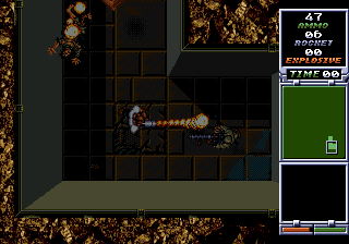 In addition to chopper combat, Red Zone also has a series of overhead on-foot stages. These are a little bit more straightforward, involving running through bunkers and killing soldiers, while being careful to prevent alarms. These portions of the game generally take a back-seat to the helicopter action, but they’re a welcome diversion.