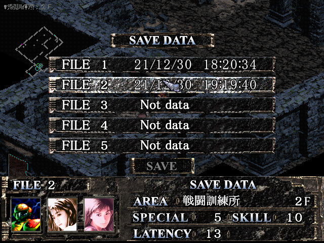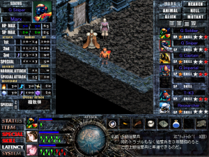 The game world is no longer one big dungeon with a lot of branches; it now consists of an overworld map with four smaller dungeons crowded with enemies, unlocked as the plot progresses, a shop where the player can sell unneeded items and buy new ones, and the MARX base established in the upper layer of Heaven’s abandoned fortress where the player can get an occasional tip on what to do at this point in game.