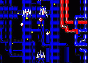 Taken on its own terms, there is little of interest about Revolter, a vertically scrolling PC88 shooter released in 1988. A doujin title developed by A.S.C. Group, it’s one of the many similar types of games on a platform which wasn’t remotely capable enough to handle the action. Both the screen scrolling and the sprite movement is jerky, the backgrounds are repetitive, and each of the four stages goes on for entirely too long.