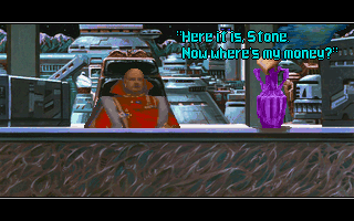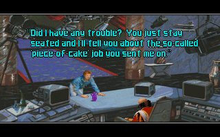 LOG ON. What you just read were a few excerpts from Rex Nebular’s ‘Voice-Activated Auto-Transcribing Audio Log’, a 22-pages strong booklet of flavor text shipped with the game, written by no one less than Steve Meretzky, of Infocom and Legend Entertainment fame. These entries show best what Rex Nebular is supposed to be: science-fiction comedy with some slight soft erotic touches, that doesn’t even try to hide the fact that its basic concept is “Space Quest meets Leisure Suit Larry“. Too bad there were no adventure game veterans of Meretzky’s caliber working on the actual game (MicroProse was much more well known for their strategy games, although they did do a few other adventures like Return of the Phantom and Dragonsphere), so this booklet essentially remains the funniest part of the whole product. For example, the idea of Rex’s audio log always shutting off a few seconds too late is ingenious, but the game doesn’t take it anywhere. It also doesn’t do anything with the characters introduced other than Rex himself and Stone, his current employer. Of all other characters, only Lolita is barely mentioned a few times. LOG OFF. Damn, she looked pretty hot on the pi