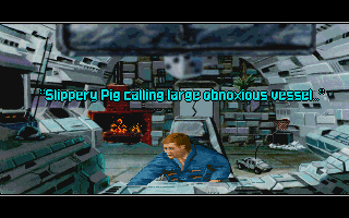 LOG ON. There’s one more hurdle to take while getting accustomed to the interface. MicroProse was searching for a compromise between the comfort of a point & click interface and the flexibility of a parser, so next to your standard commands like ‘take’ or ‘push’ (strangely, ‘throw’ is also among them), each item has its own set of uses. Players condition to more recent Lucasarts games tend to overlook that they can “look at” something through their binoculars or “disassemble” them, instead of a simple ‘use’ command. LOG OFF.