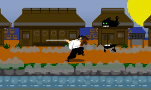 The samurai guy from many of the other games returns as the star of this NES-style game.