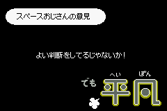 Of course, this simplicity means you can tear through the game pretty quickly. The difficulty judge is pretty lenient in the early levels, and even later on, you can pass stages even though you’re not doing particularly well. The real key, though, is the way the grading system works. When you complete each stage, you’re given a quick little comment and given one of three ranks: “Yarinaoshi”, (“Retry”), “Heibon” (“Mediocre”), or “High Level”. There are no “good” or “great” ranks – even if you do pretty well, but not high enough to get the best, you’re stuck with being “mediocre”. It’s like you can get three grades on a test – an A+, a C and an F. You don’t even need to understand the text to understand the message – the mediocre rating is accompanied by a clumsy little sound effect and dull grey letters. And no video game player wants to be told they’re “just mediocre” – they’re gonna try to get better. Most stages here are a little over a minute long, reaching that “high level” just requires a bit of dogged persistence. Mastering a song will also give you a medal, are stocked and use to unlock various other mini-games and such.