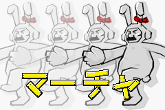 In this game, you press the “A” button to a constant beat. Not one of the more interesting ones, but watching a crazy eyed rabbit bounce and flail haphazardly is a cryptically amusing joy. Plus: what is it with rhythm games and crack rabbits? (see: Vib Ribbon)