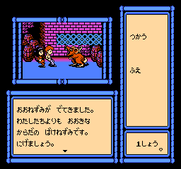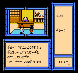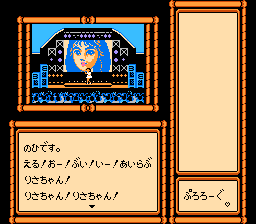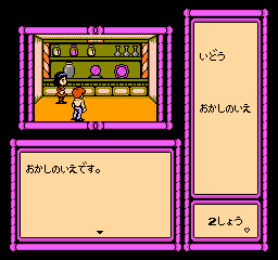 This FDS adventure game, translated as “Risa’s Fairy Legend”, stars idol Risa Tachibana, who was a famous pop singer and actress in the late 80s. You play as yourself, a huge fan of Ms. Tachibana’s, attending one of her concerts. All of a sudden, the two of you are transported to a fantasy dimension. You now must explore the world so you can find the Harp of Peace, the Sword of Justice, and Gem of Love, all in order to defeat the evil Witch of Darkness, Delira and return home. Along the way, you’ll run into situations and meet characters from assorted fairy tales and myths, like the Matchstick Girl, The Honest Woodsman, Hansel and Gretel, Tarou Urashima, Medusa, The Little Mermaid, Cinderella, and others. The game also shares the name of a song released a few months prior. Oddly, this uses a blue disk card, but doesn’t use the fax system.