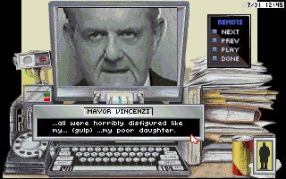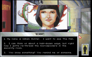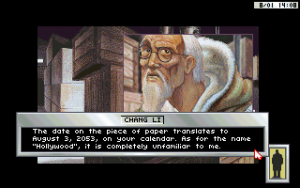 In addition to the initial releases for the PC, Macintosh, and Amiga on floppy disk – which are all largely similar other than slight differences in color palette and sound quality – Rise of the Dragon was one of the few Sierra/Dynamix games ported to the Sega CD. The subtitle “A Blade Hunter Mystery” is added to the title screen, implying that it would be part of a larger series, although that never happened. It’s actually a pretty quality production, with fully voiced dialogue and substantially enhanced sound. While there are some cheesy lines, especially with the Chinese accents, the voice acting adds quite a bit to the atmosphere, and enhances the otherwise average writing. It stars several well known voiceover artists, including the ubiquitous Cam Clarke as Blade. However, the character portraits still aren’t animated, with completely static pictures as they speak, and all of the subtitle text is gone.